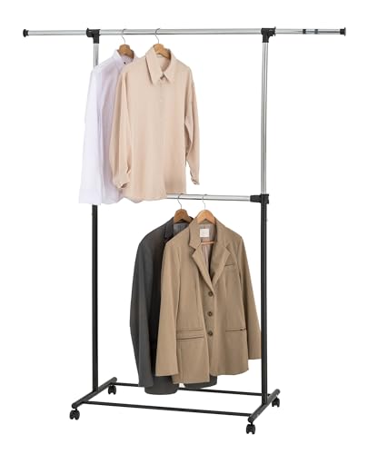 alpina Adjustable Mobile Clothes Rail - Valets and Clothes Rack with Wheels and Hooks - Clothes Rack on Feet - Black