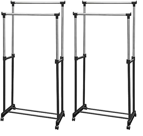 Home Vida Double Garment Rack Adjustable Clothes Rail, Silver (Pack of 2)