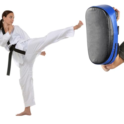 Boxing Pads, Boxing Mitts, Curved Fits Wrist Thicken PU Shock Absorbing Eva Sparring Gear, Adjustable Punching Focus Mitts for Martial Art Sparring Karate Training, 13.8x7.5in Blue