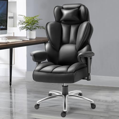 Efomao Desk Office Chair, Big and Tall PU Leather Ergonomic Office Chair, 200KG Adjustable High Back Computer Chair,Executive Swivel Chair with Footrest and Lumbar Support, Black