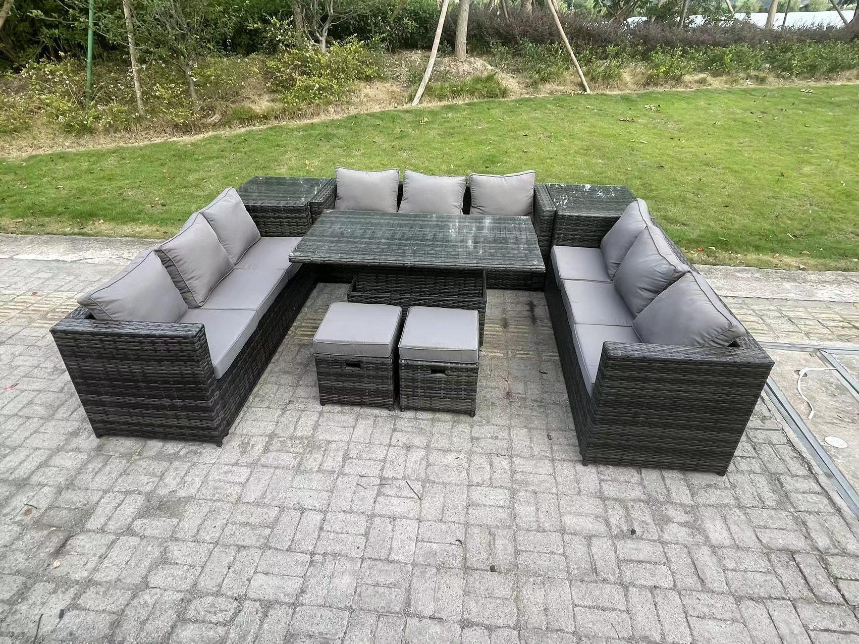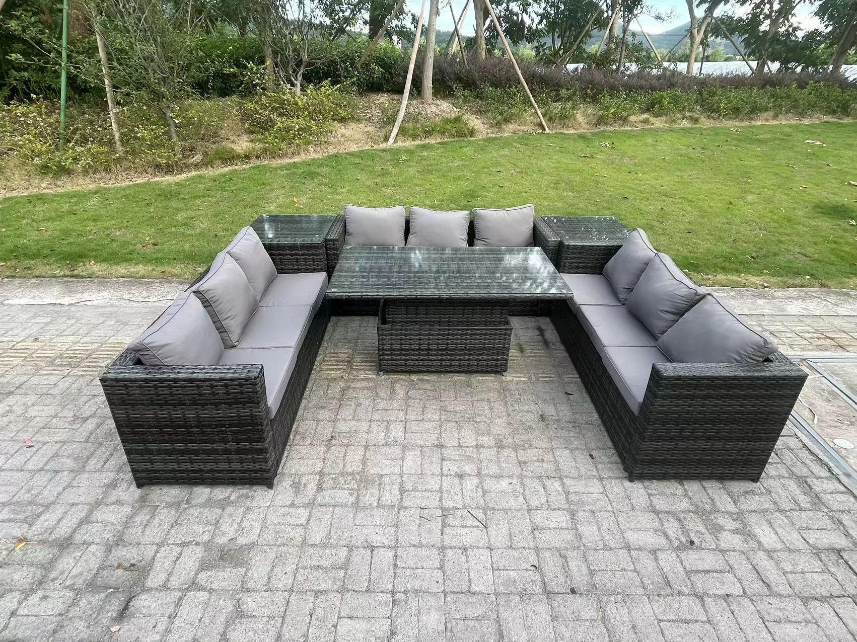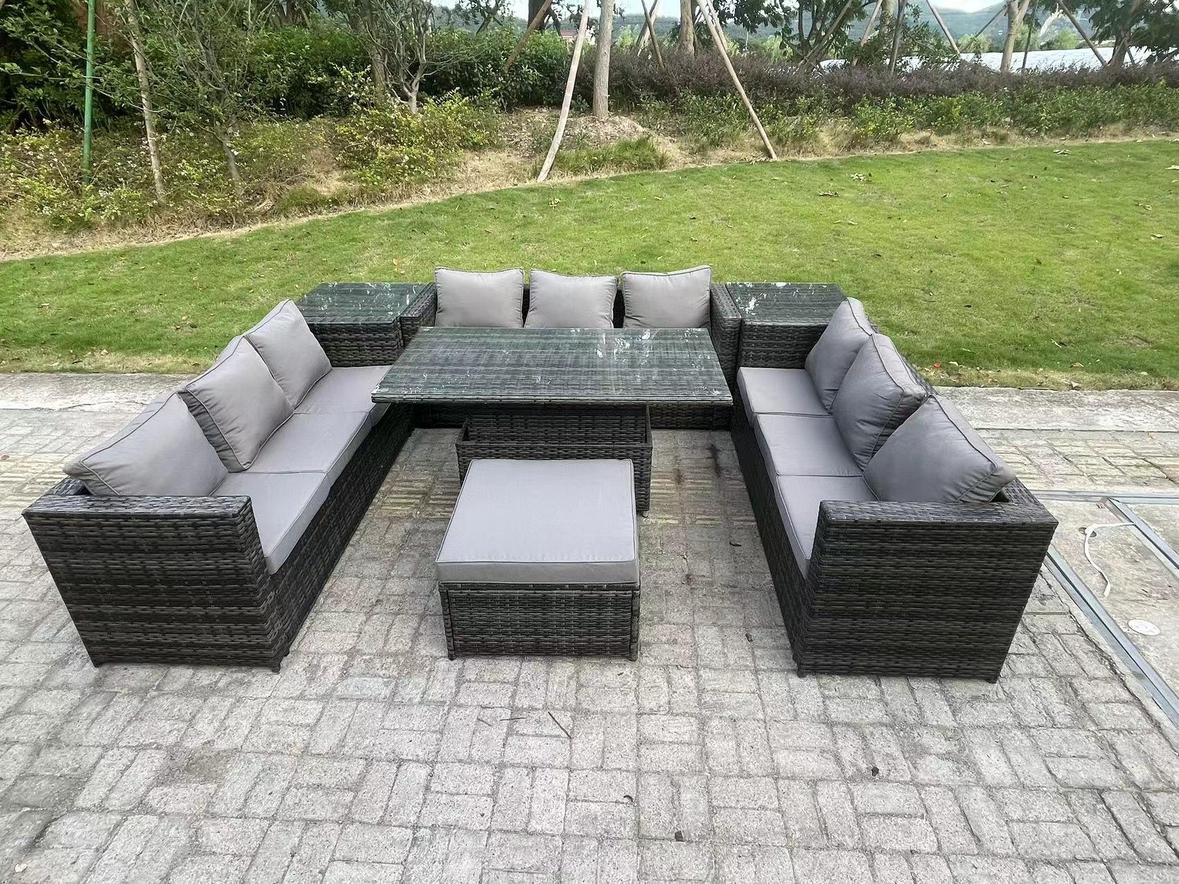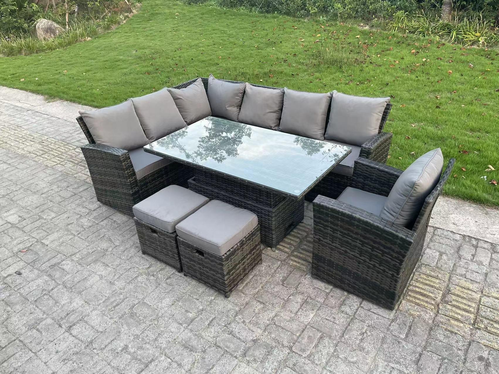7 Seater Rattan Corner Sofa Set Garden Furniture Rising Adjustable Dining Table Set Arm Chair