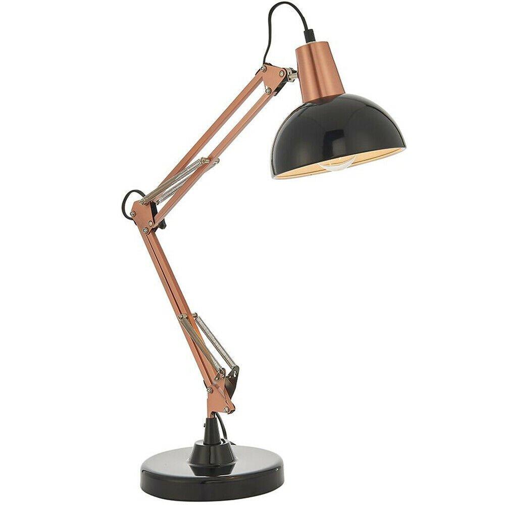 Fully Adjustable Swing Arm Table Lamp COPPER & BLACK Bedside Feature Light