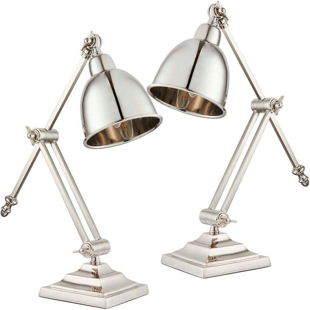 2 PACK Adjustable Arm Table Lamp Polished Nickel Base Shade Bedside Metal Light