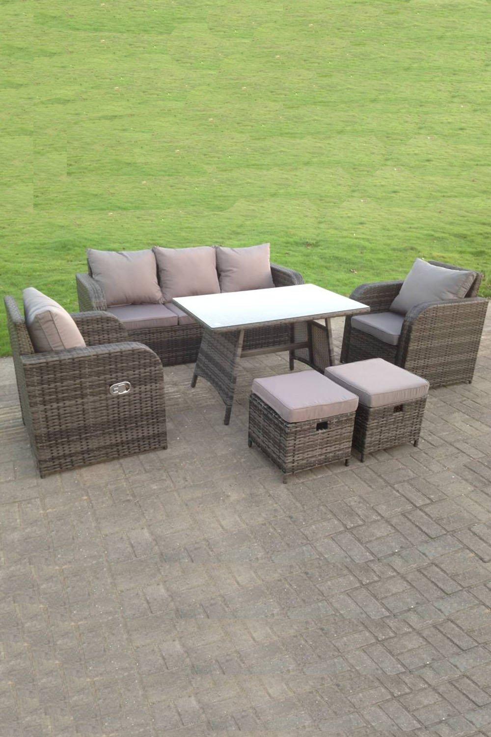 Wicker Rattan Garden Furniture Set Lounge Reclining Adjustable Chair Dining Table Small Footstools 7 Seater