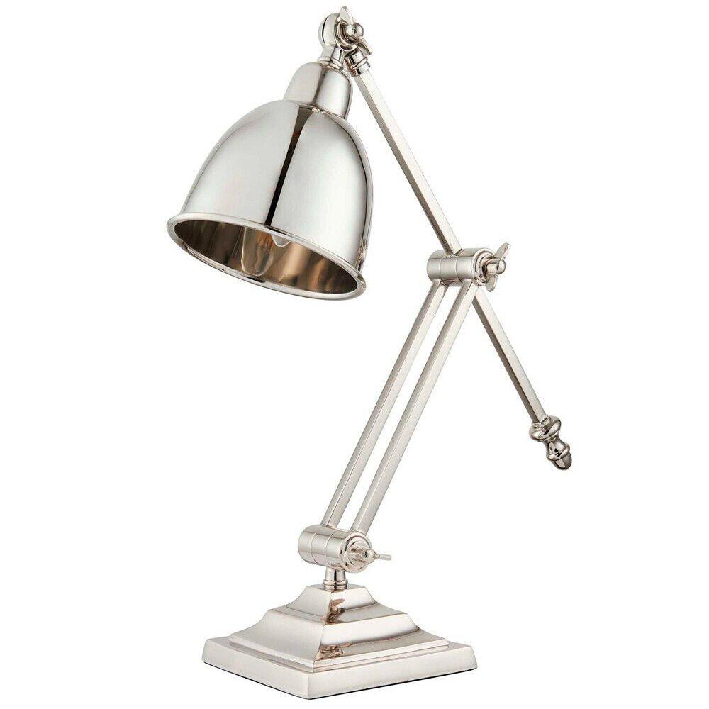 Adjustable Arm Table Lamp Polished Nickel Base Shade Bedside Feature Metal Light