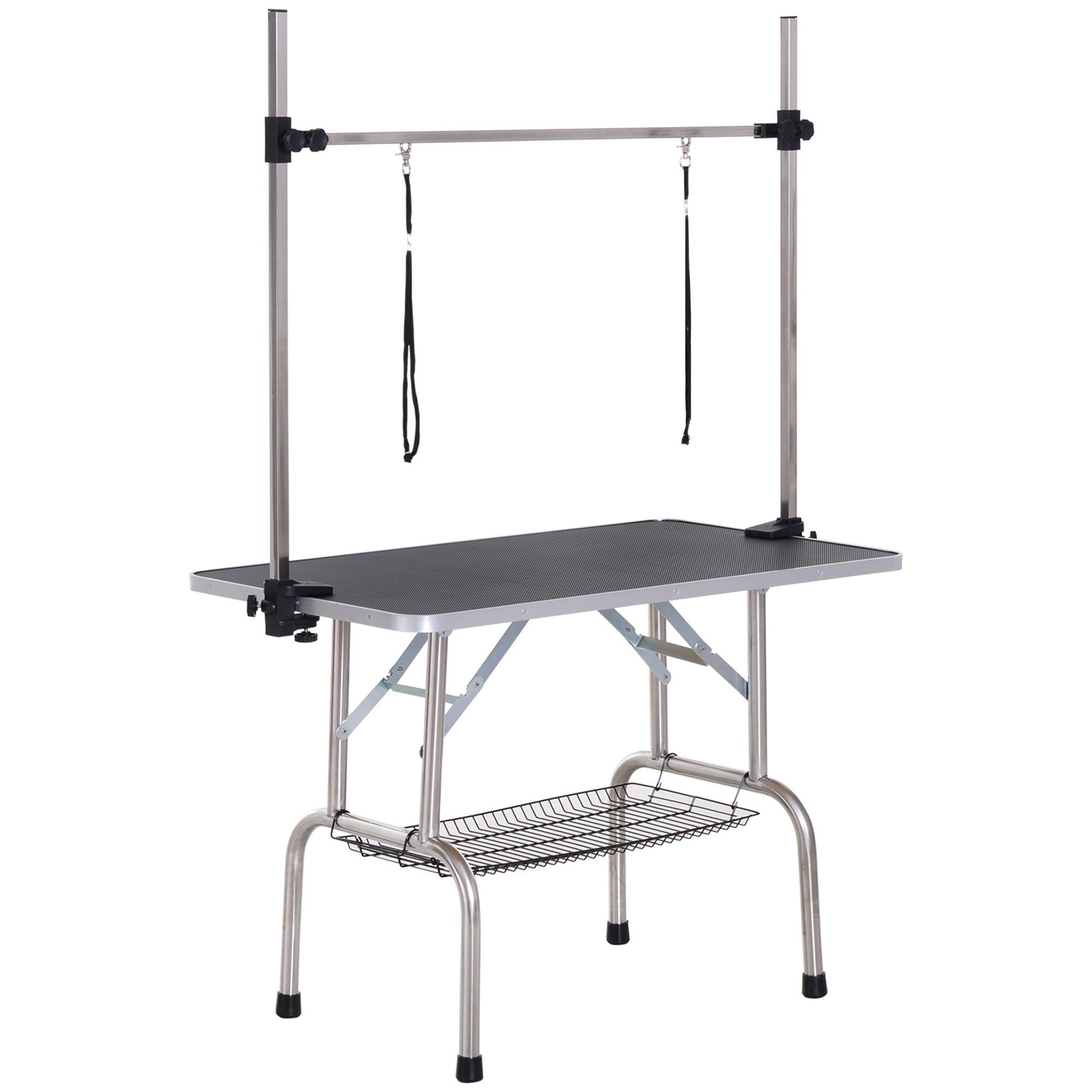 Metal Adjustable Dog Grooming Table Rubber Top 2 Safety Slings Mesh Heavy