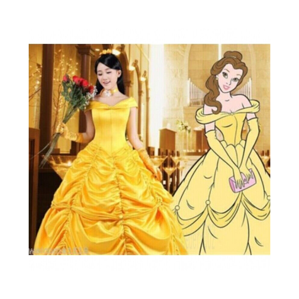 ( S) Adult Belle Cosplay Costume Beauty and The Beast Princess Ball Gown Fancy