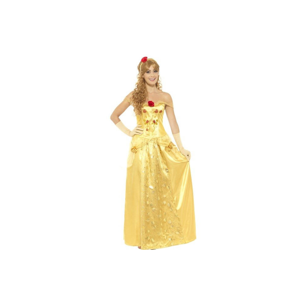 Large Women's Golden Princess Costume - princess costume fancy dress ladies golden adult fairytale belle womens beauty book day outfit