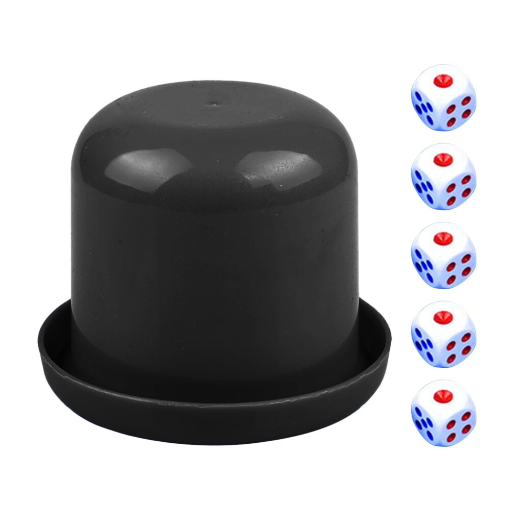 Dice Shaker Cup Set with Lid, Includes 5 Dice, Perfect for Adult Board Games and Dice Stacking Games, Black Color