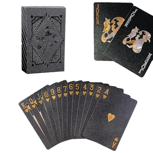 ETUCYNG 2 Pack Black Gold Playing Cards PVC Black Poker Playing Cards 54 Sheets/box Waterproof Interactive Group Card Deck Portable Kids Toys For Family Party Game BBQ Gatherings Adult Card Games