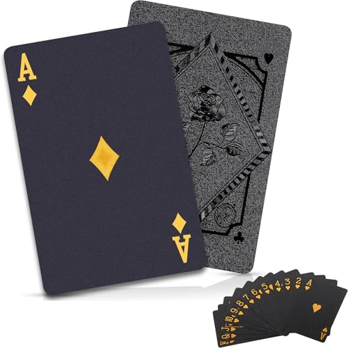 Wugauwor Waterproof Playing Cards 2 Pack, Plastic Poker Cards, Deck of Card, Diamond Plastic Playing Card for Beach Blackjack Texas Canasta Bridge Adult Card Games, Gold & Black