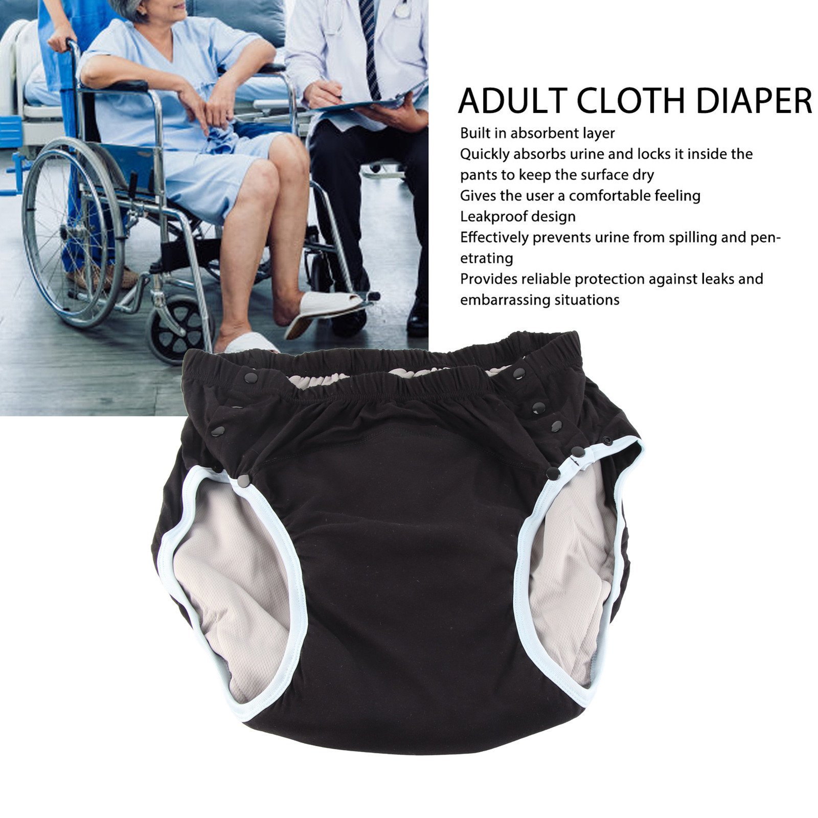 Black Adult Diaper Elderly Incontinence Nappy Washable Adjustable Diaper Pa OU