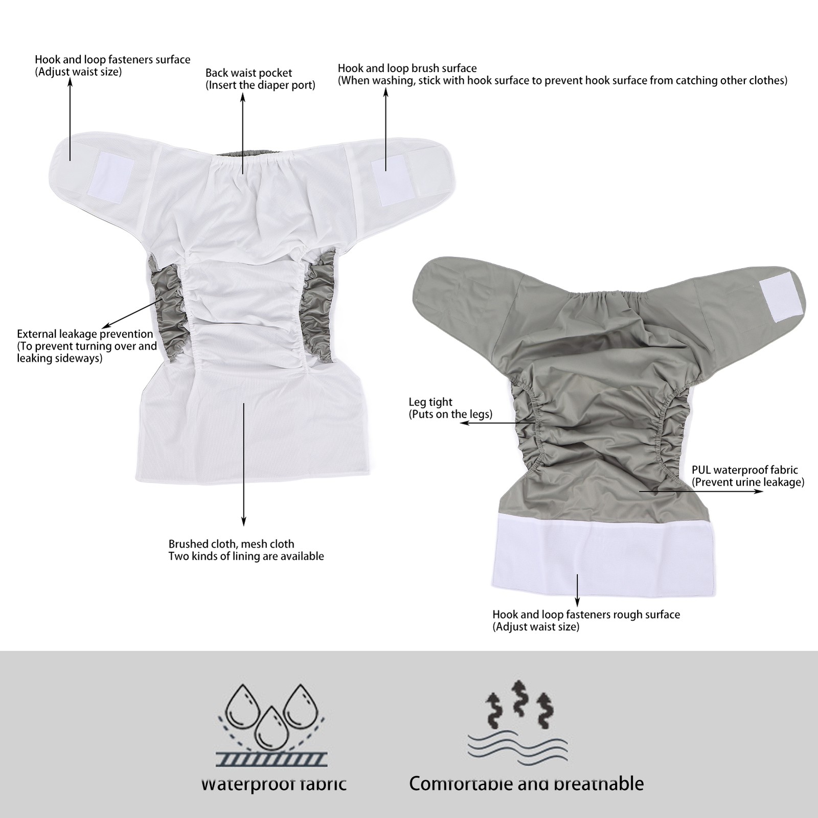 (not Included)Reusable Adult Cloth Diaper Waterproof Elderly Incontinence
