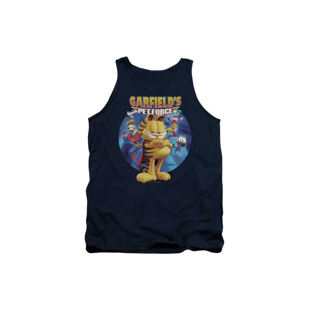 Trevco Sportswear GAR435-TK-3 Garfield Dvd Art Adult Tank Top, Navy - Large