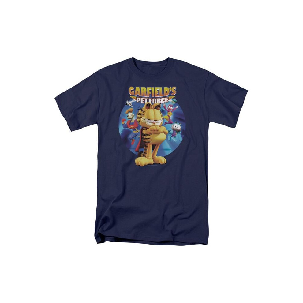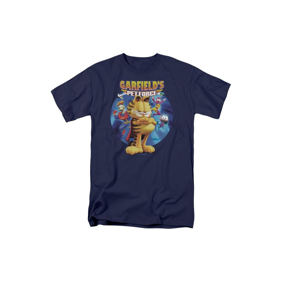 Trevco Sportswear GAR435-AT-3 Garfield Dvd Art Adult Regular Fit Short Sleeve T-Shirt, Navy - Large