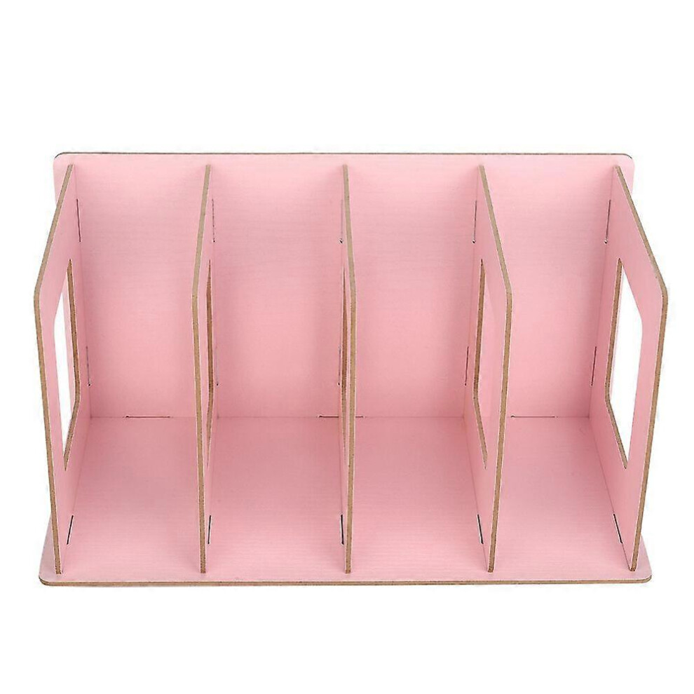 (As show, One size) Wooden DIY Desktop Bookshelf Rack Books DVD Storage Holder for Students Kids Adult (Light Pink)