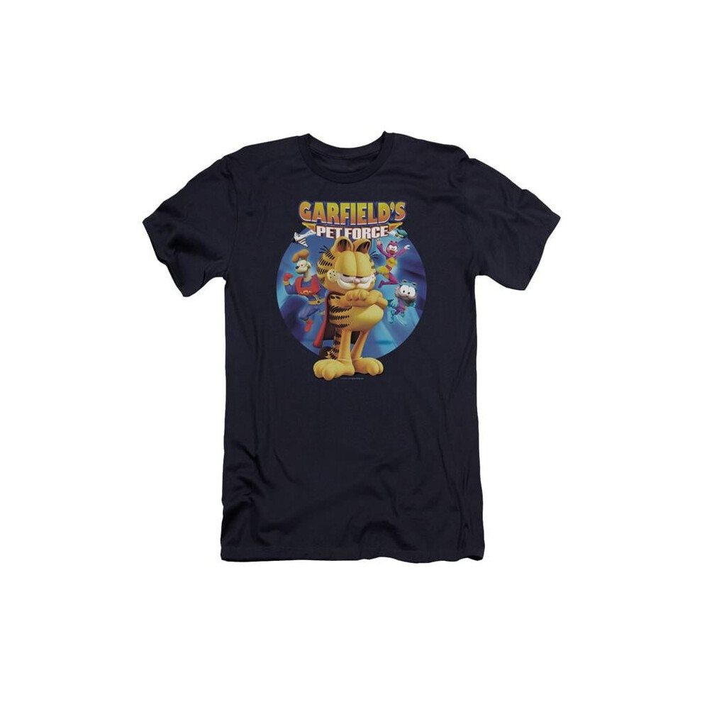 Trevco Sportswear GAR435-PSF-2 Garfield Dvd Art Premium Canvas Adult Slim Fit 30-1 Short Sleeve T-Shirt, Navy - Medium
