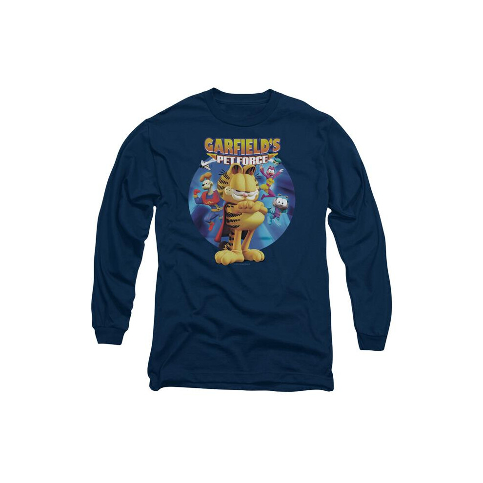 Trevco Sportswear GAR435-AL-1 Garfield Dvd Art Adult Long Sleeve T-Shirt, Navy - Small