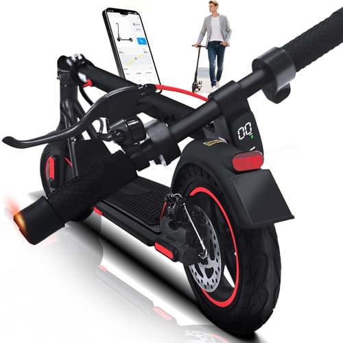TYOKUM Electric Scooter 10 inch Big Solid Tires, Electric Scooters Adult, 25-30km Range, 3 Speed Mode, Foldable Electric Scooters with APP, Double Braking System E Scooter for Adults and Teens Gifts