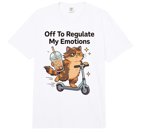Off to Regulate Emotions Funny Coffee Cat Electric Scooter Comfort Colors Adult Heavyweight T-Shirt