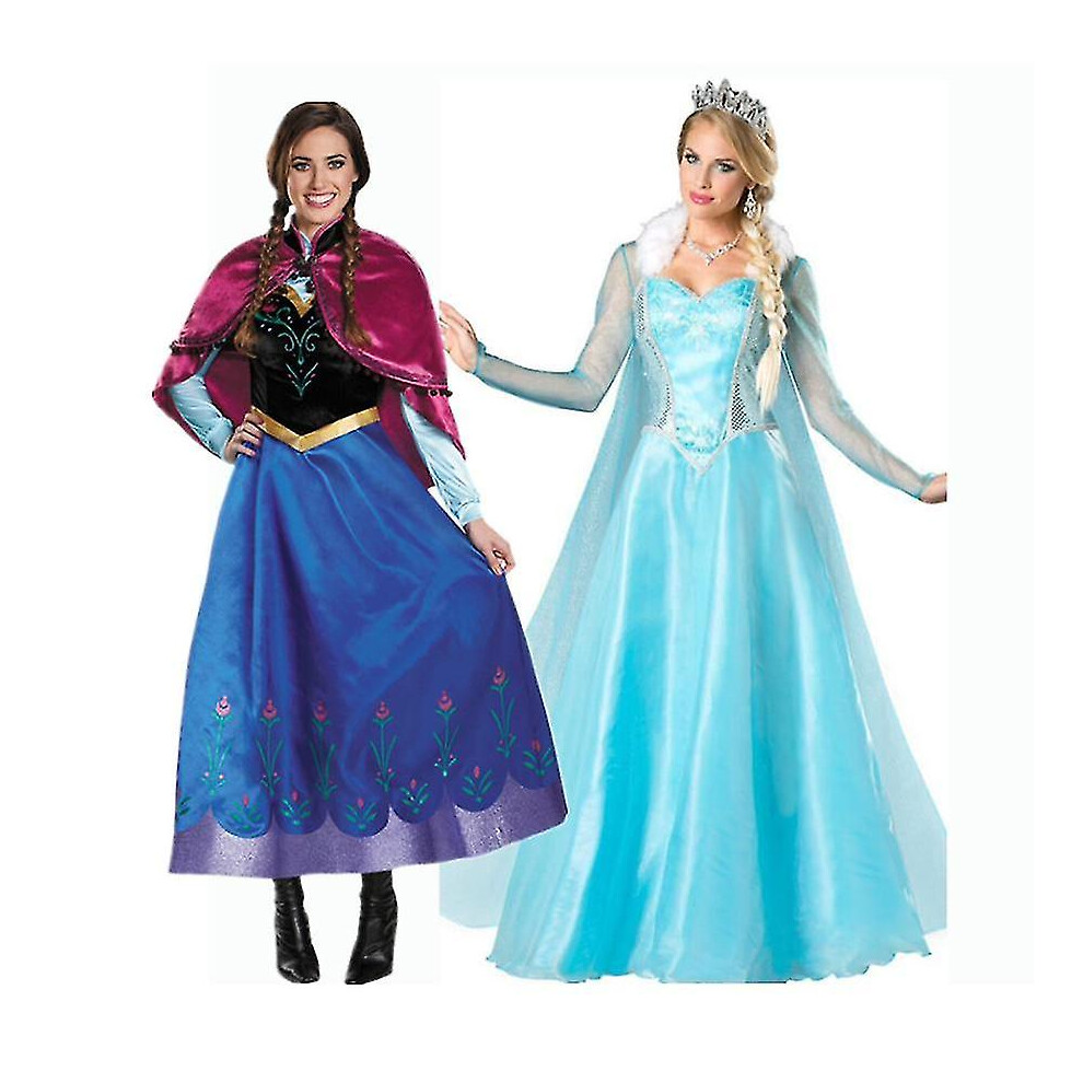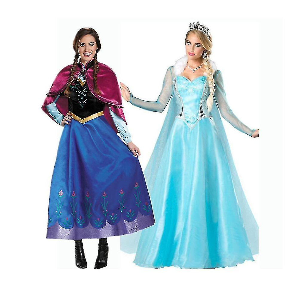 (Elsa, L) Adult Princess Anna Elsa Costume Christmas Cos Fancy Dress Outfit