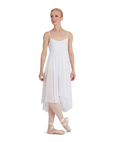 Capezio Camisole Empire Dress, Lyrical Dance Costumes for Women, Ballet Dress with Leotard, Georgette Skirt and Shelf Bra, Dance Outfit for Contemporary, Ballet, BG001, White, Adult Size Medium