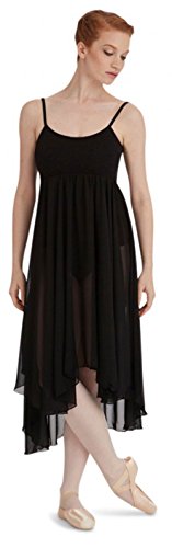 Capezio Camisole Empire Dress, Lyrical Dance Costumes for Women, Ballet Dress with Leotard, Georgette Skirt and Shelf Bra, Dance Outfit for Contemporary, Ballet, BG001, Black, Adult Size Medium