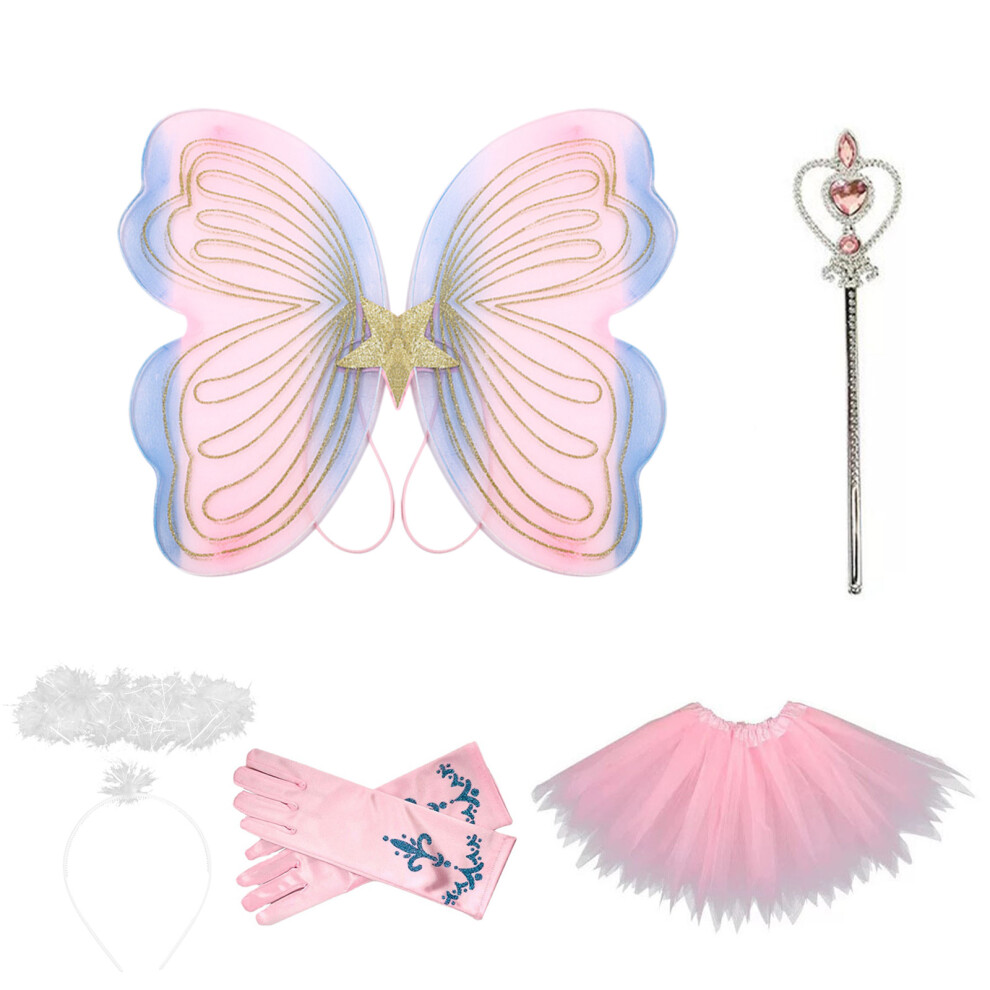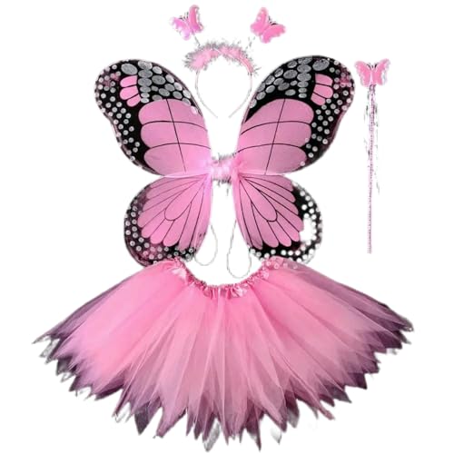 NYSBH Adult Kids Fairy Costume Set Simulation Butterfly Wings Pointed Tutu Skirt Headband Wand Party Dress Up