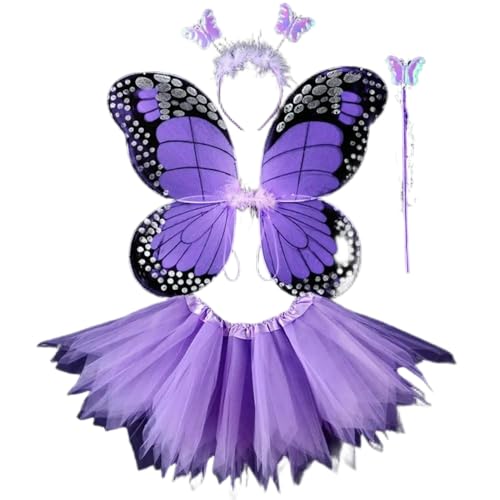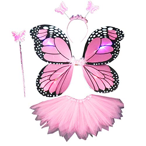 NVOQILIN Adult 4Pcs Fairy Costume Set LED Simulation for Butterfly Wing Pointed Skirt Headband Wand Princess Party
