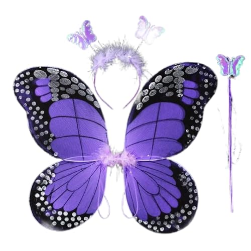 Adult Fairy Wings Butterfly Costume Accessories, Princess Outfit, Party Rep Glitter for Women, Halloween, Carnival, Christmas Party, Lightweight Transparent Wings Set