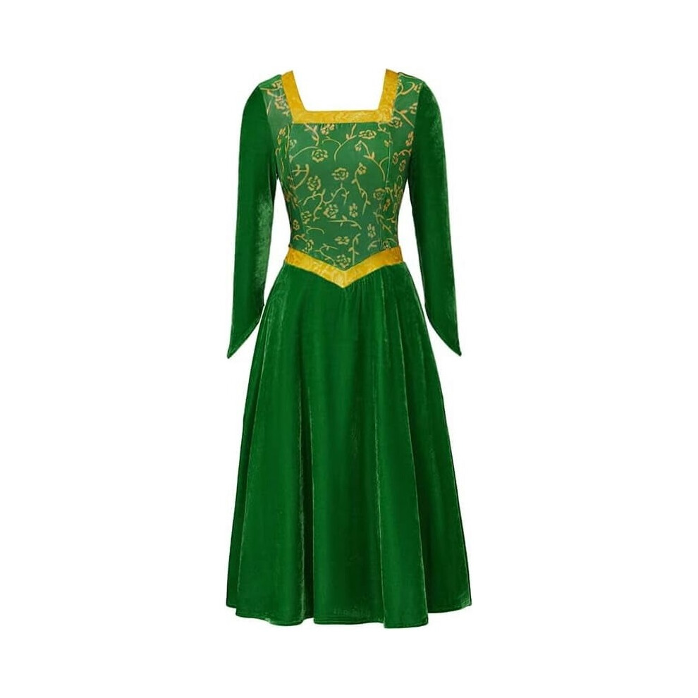 (S) Women's Princess Fiona Green Velvet Dress Adult Costume Fairy Tale Outfit Party Dress