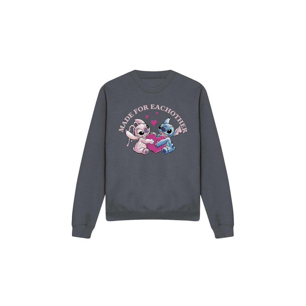 (S, Charcoal) Lilo & Stitch Unisex Adult Made For Each Other Sweatshirt