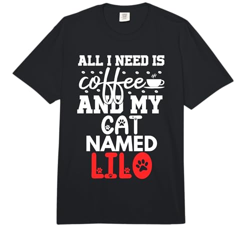 Cat Name Lilo Gifts All I Need is Coffee Cat Named Lilo Comfort Colors Adult Heavyweight T-Shirt