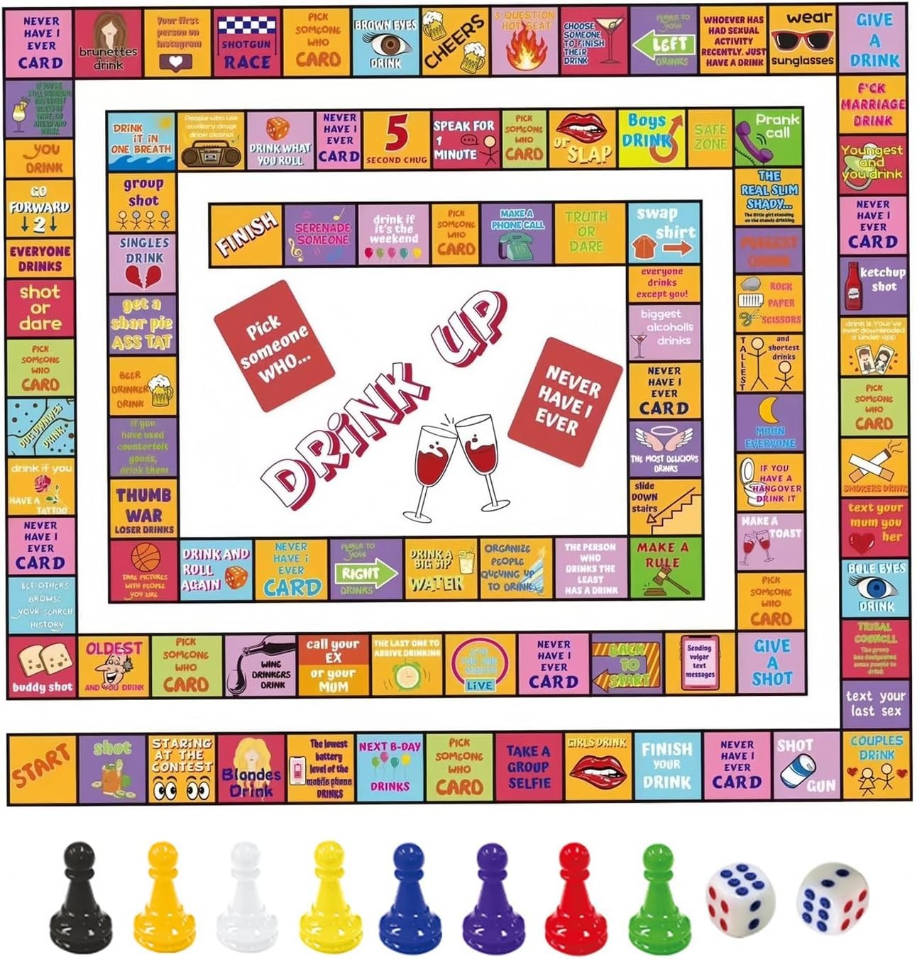 Cunegra Drinking Board Game for Adults, Adult Monopoly Board Game, Drinking Games for Girls Night Bachelorette, Waterproof Drinking Card Games for 2-8 Players, Age 18+