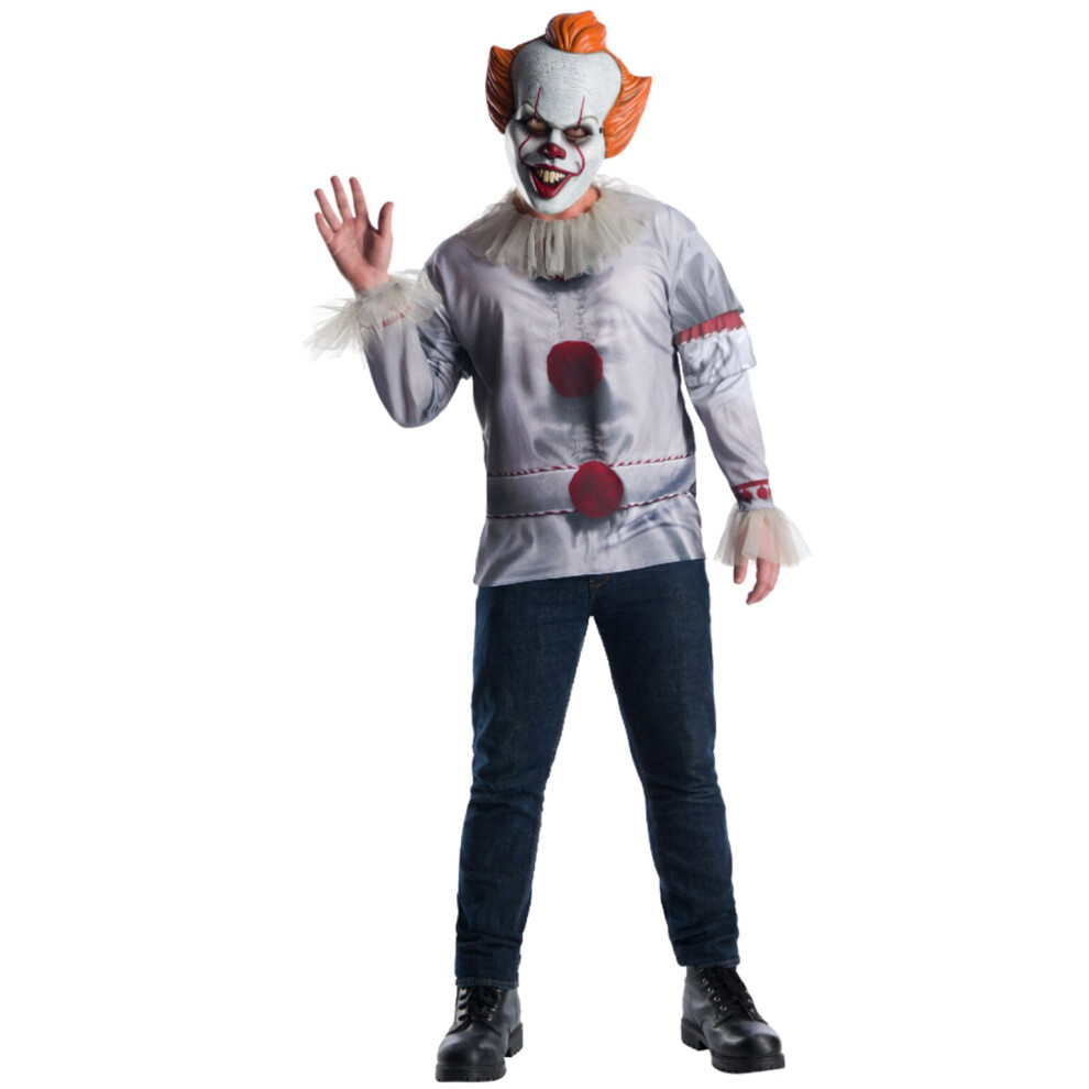 Adult PENNYWISE IT Movie Top + Mask Fancy Dress Costume Halloween Stephen King