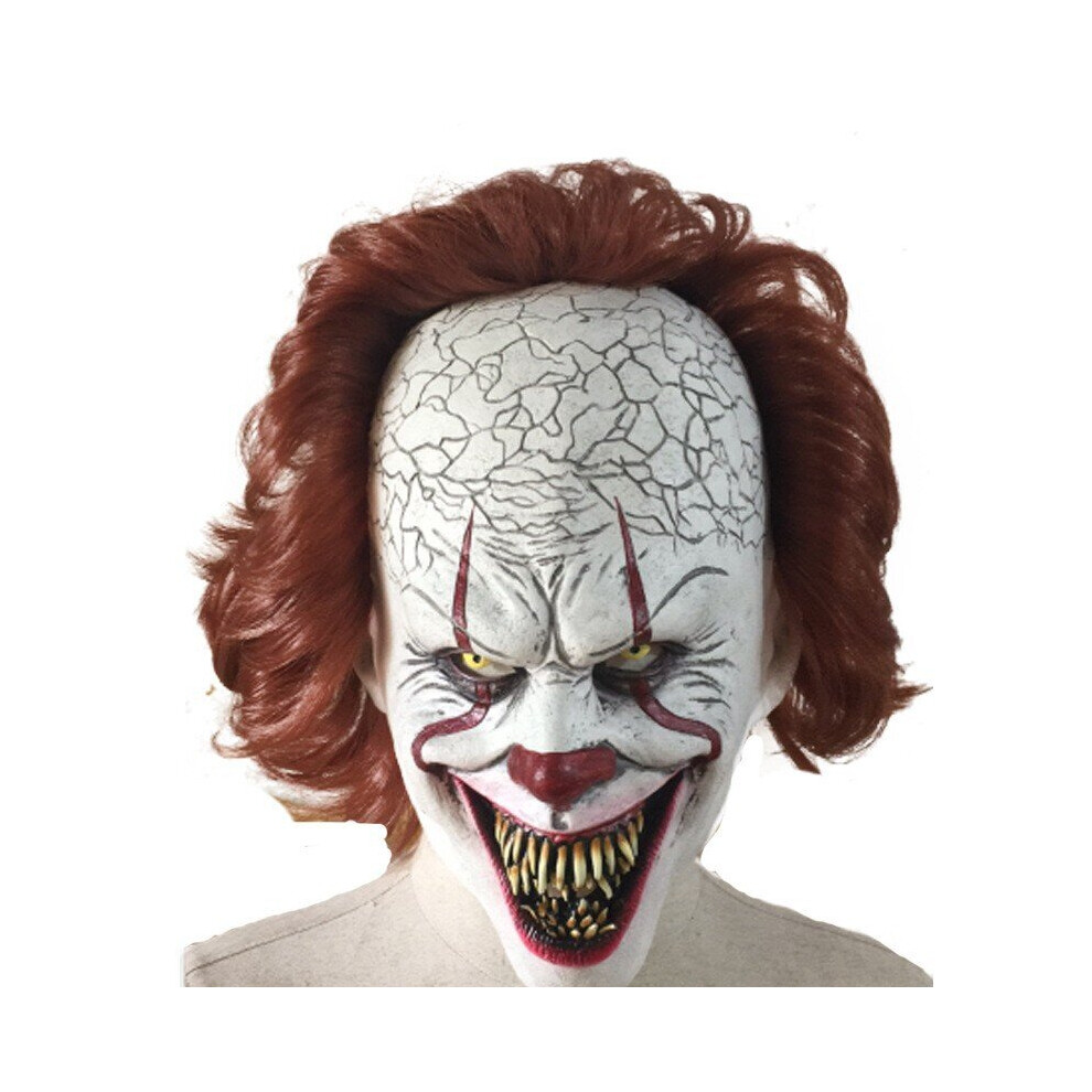 Scary Pennywise Mask with Hair Halloween Demon Clown Mask Creepy Full Face Costume Props for Halloween Carnival Cosplay Party for Adult