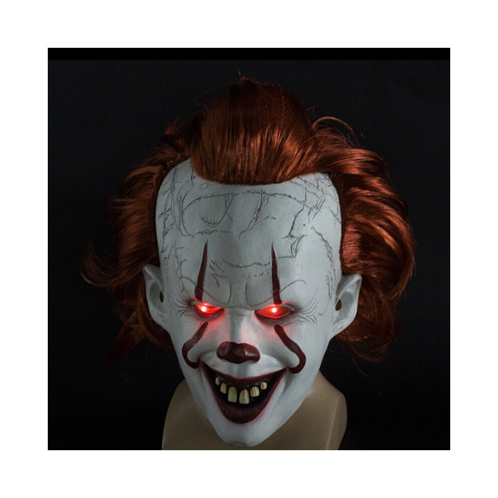 (IT Clown Buck Teeth With LED) Pennywise IT Clown Mask Game Latex Scary Adult Halloween Costume Props