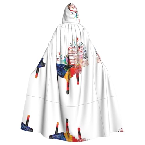 BYPPJGH Halloween Hooded Cape For Adult Piano Violin Music Notes Full Length Cape Cloak Halloween Christmas Cosplay Costume For Men And Women