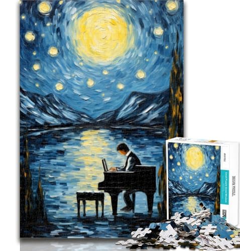 Adult Jigsaw Piano Under The Night Sky 1000 Piece Jigsaw Puzzle for Adults And Teenagers,for Educational Game Challenge Toy Artists Collection, Fine Art 50x75cm