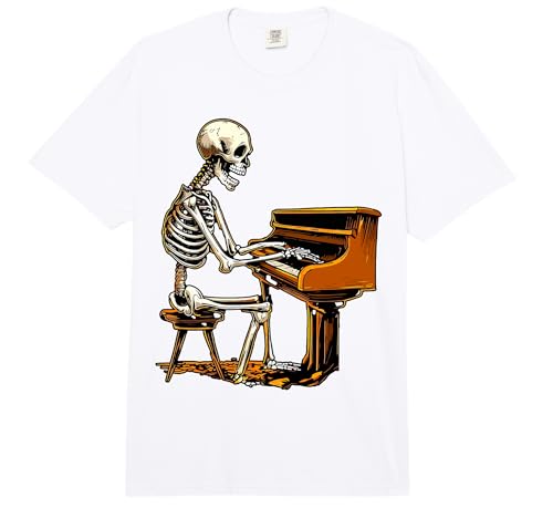 Skeleton Playing Piano Funny for Pianist Men Women Piano Comfort Colors Adult Heavyweight T-Shirt