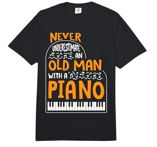 Never Underestimate Old Man with A Piano - Pianist Gift Comfort Colors Adult Heavyweight T-Shirt