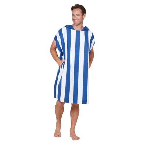 ADULT Microfiber Swim Poncho Towel Robe - Blue/Grey - Beach Swimming Top