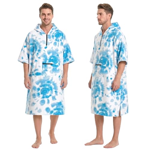 Surwin Hooded Changing Robe Adult Surf Poncho Towel, Beach Towel Surfing Swimming Robe Light Weight Compact Microfibre Changing Wetsuit for Women and Men (70 * 110cm,Lake Blue)