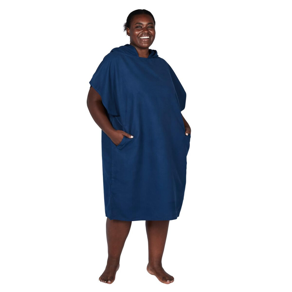 Fit-Flip Poncho Towel - Microfibre Changing Robe Adult - Swim and Surf Beach Robes - Quick Dry Hooded Swimming Towel for Men and Women - size L, Darkblue-Gray