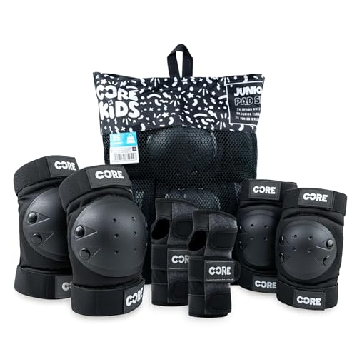 CORE Junior Triple Pad Set Knee Pads Elbow Pads Wrist Guards 6 in 1 Protective Gear Set for Kids Youth Adult for Skateboarding Scooter Cycling BMX Skating Skate - XXS (3-7 Years)