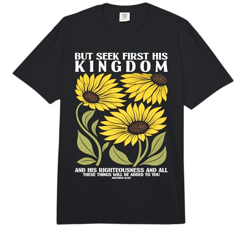 Seek First The Kingdom of God Sunflower Christian Religion Comfort Colors Adult Heavyweight T-Shirt