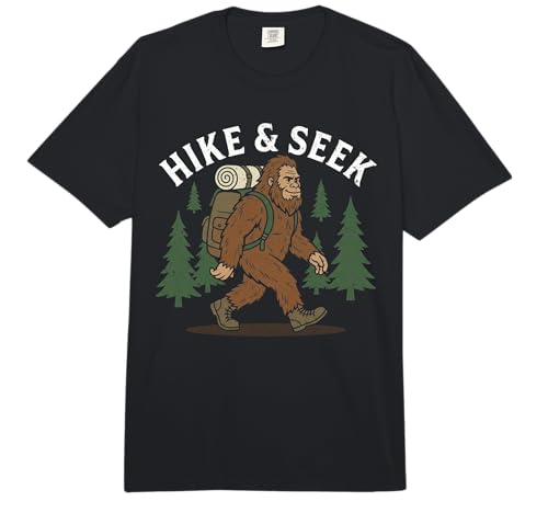 Hike and Seek Bigfoot Funny Hiking Camping Forest Wildlife Comfort Colors Adult Heavyweight T-Shirt