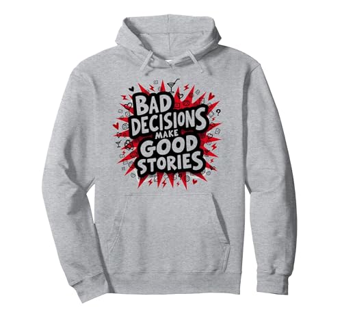 Bad Decisions Make Good Stories Funny Party Humor Pullover Hoodie, Adult Unisex, Red, L