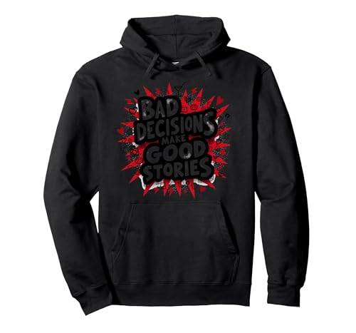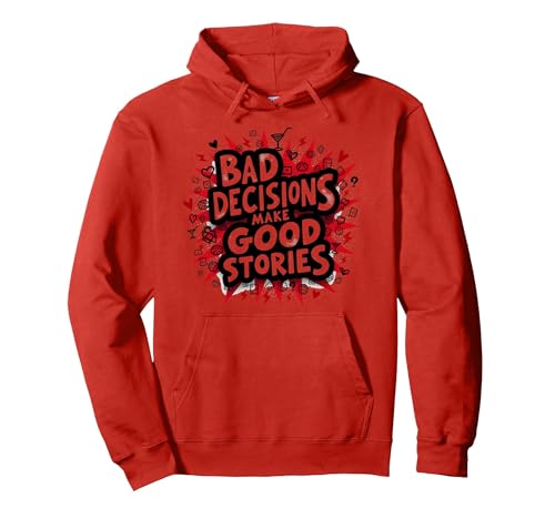 Bad Decisions Make Good Stories Funny Party Humor Pullover Hoodie, Adult Unisex, Red, XXL