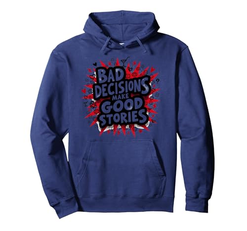 Bad Decisions Make Good Stories Funny Party Humor Pullover Hoodie, Adult Unisex, Navy, L